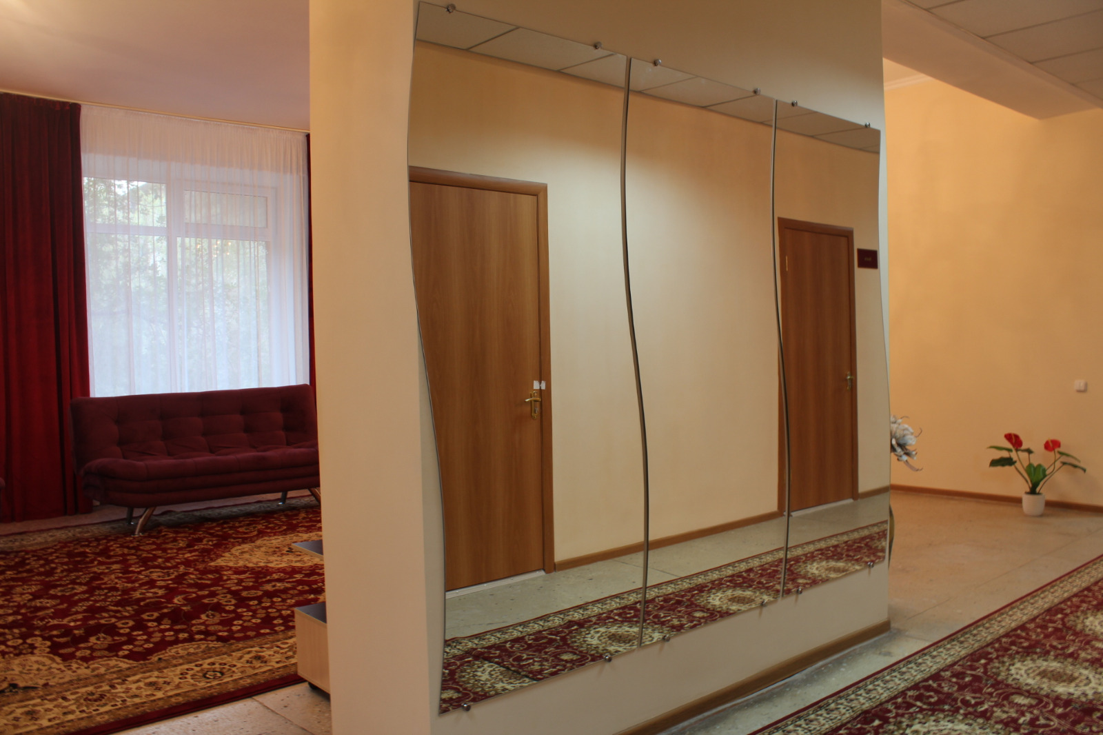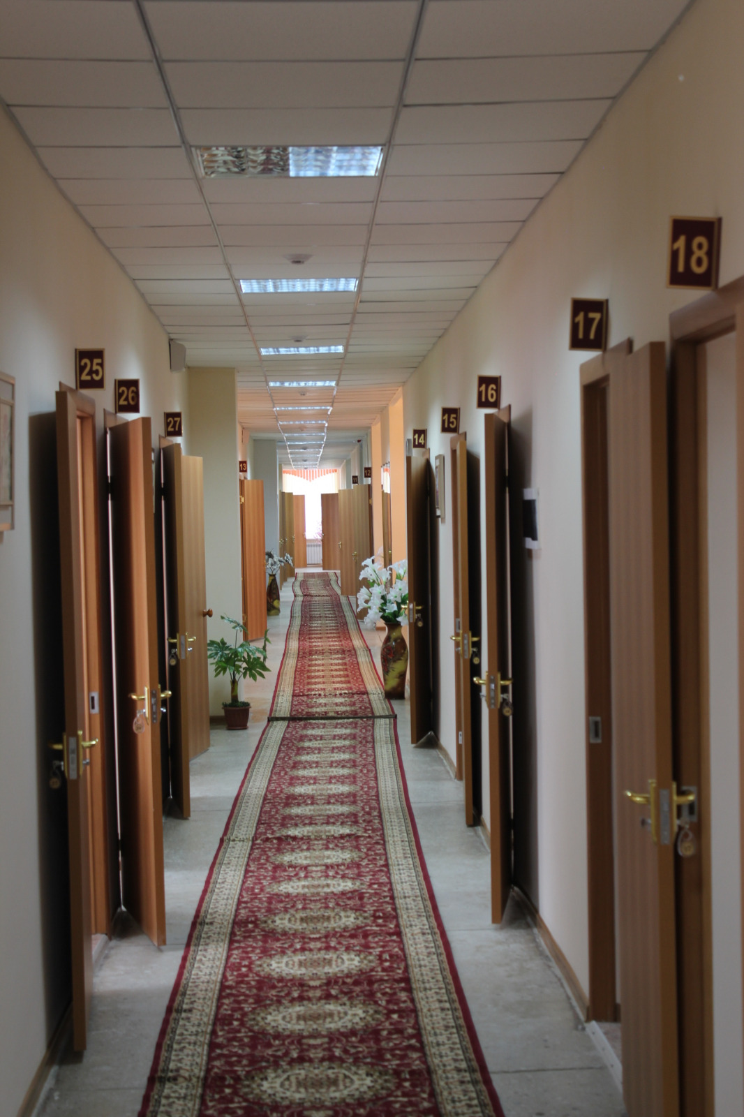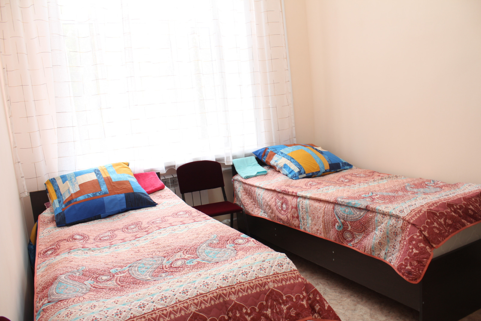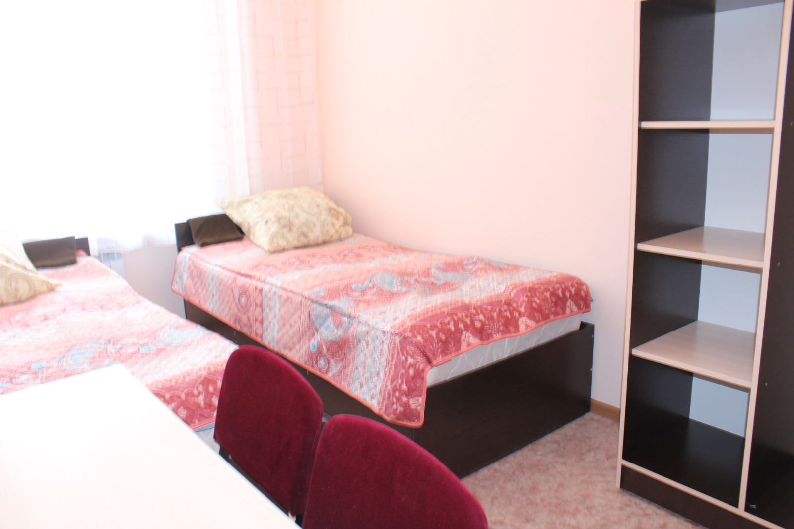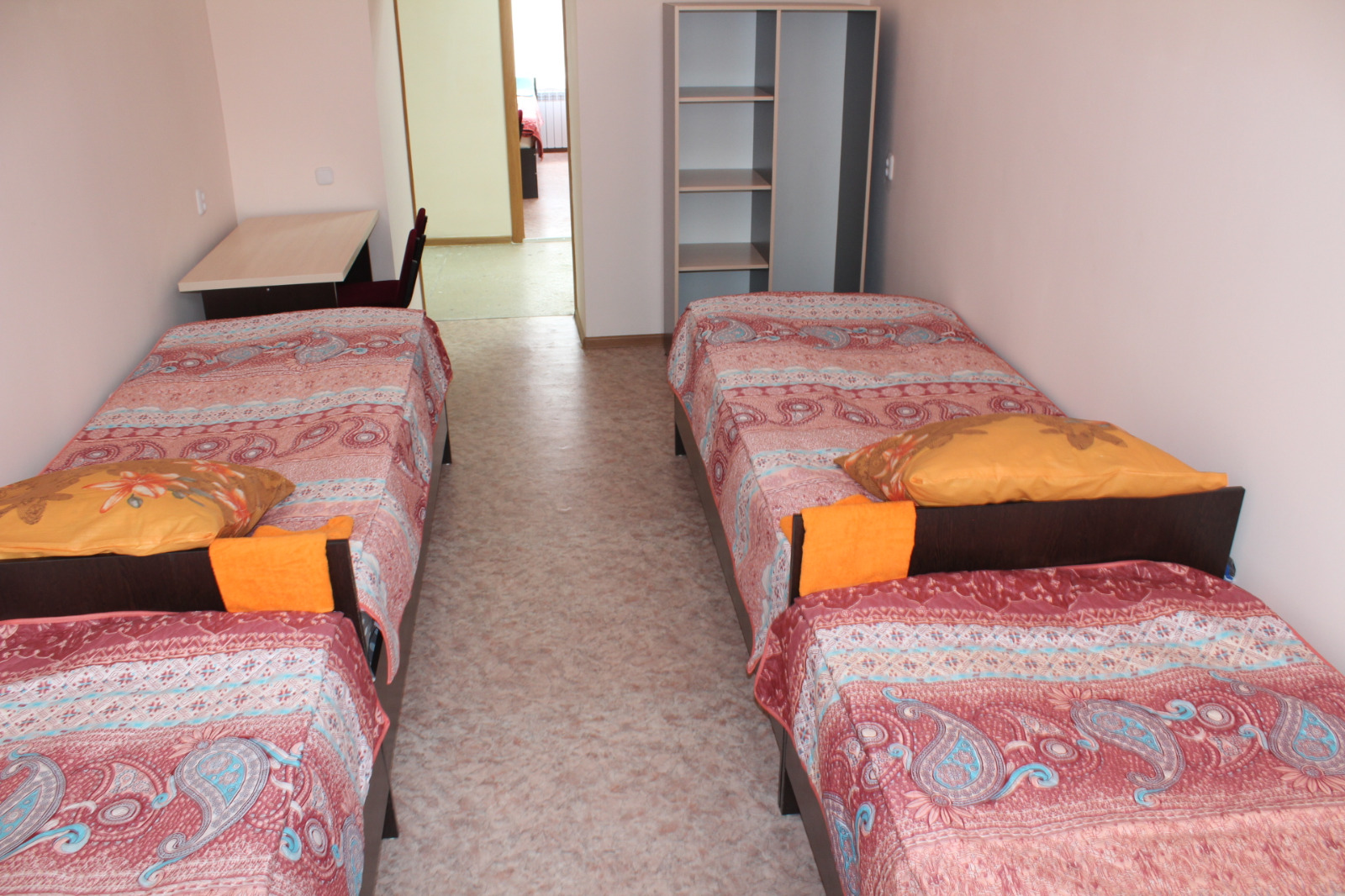 В здании общежития созданы благоприятные условия для комфортного проживания студентов. Имеются благоустроенные двух-трехместные комнаты, обставленные современной мебелью и оборудованием: кроватями с ортопедическими матрасами, столом, стульями, шкафами для одежды, постельными принадлежностями.