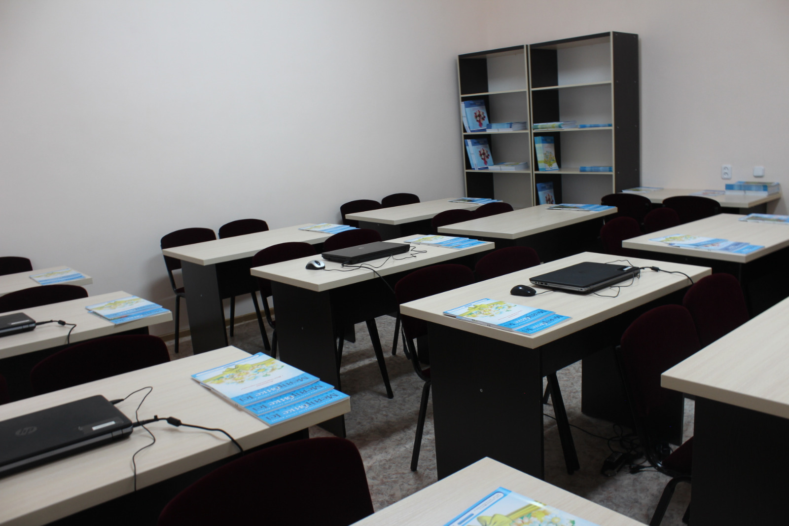 Учебная комната оснащена необходимой мебелью, а также ноутбуками, беспроводной интернет, принтерами, сканерами, электронной библиотекой.